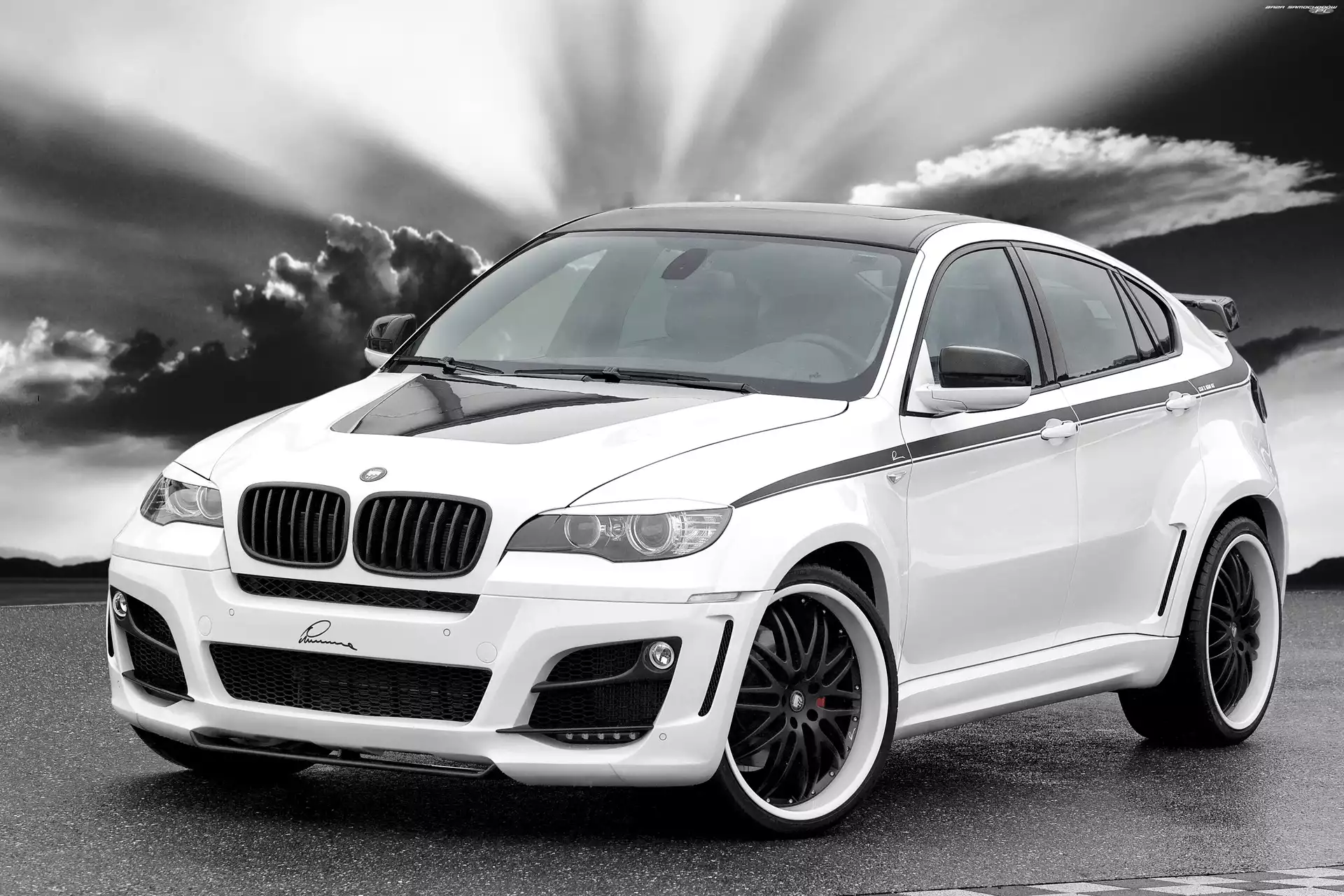 Samochód: Czerwone, Chmury, BMW X6, Zaciski
