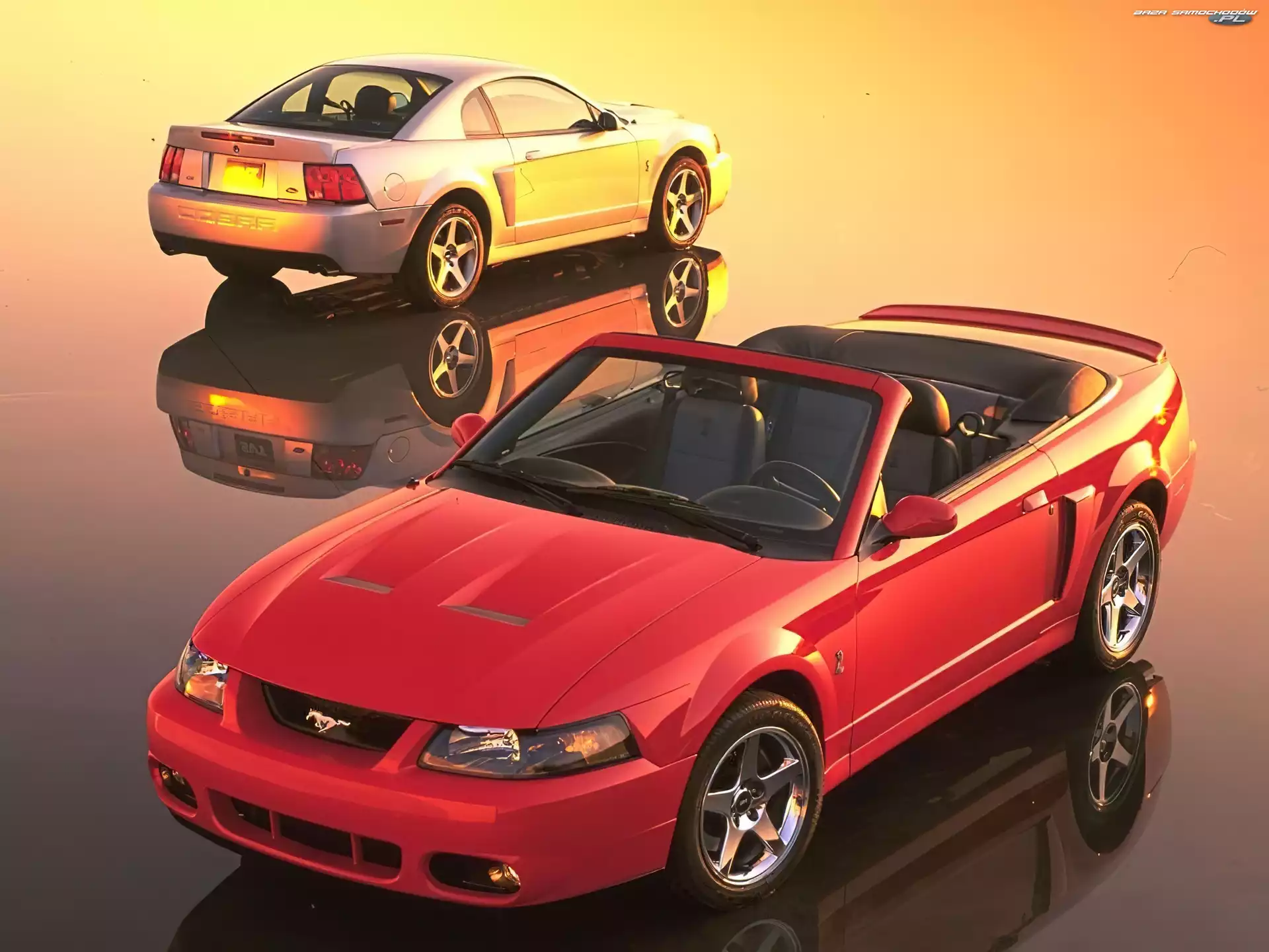 Mustang, Czerwony, Srebrny, Cabrio- Zdjęcia samochodów