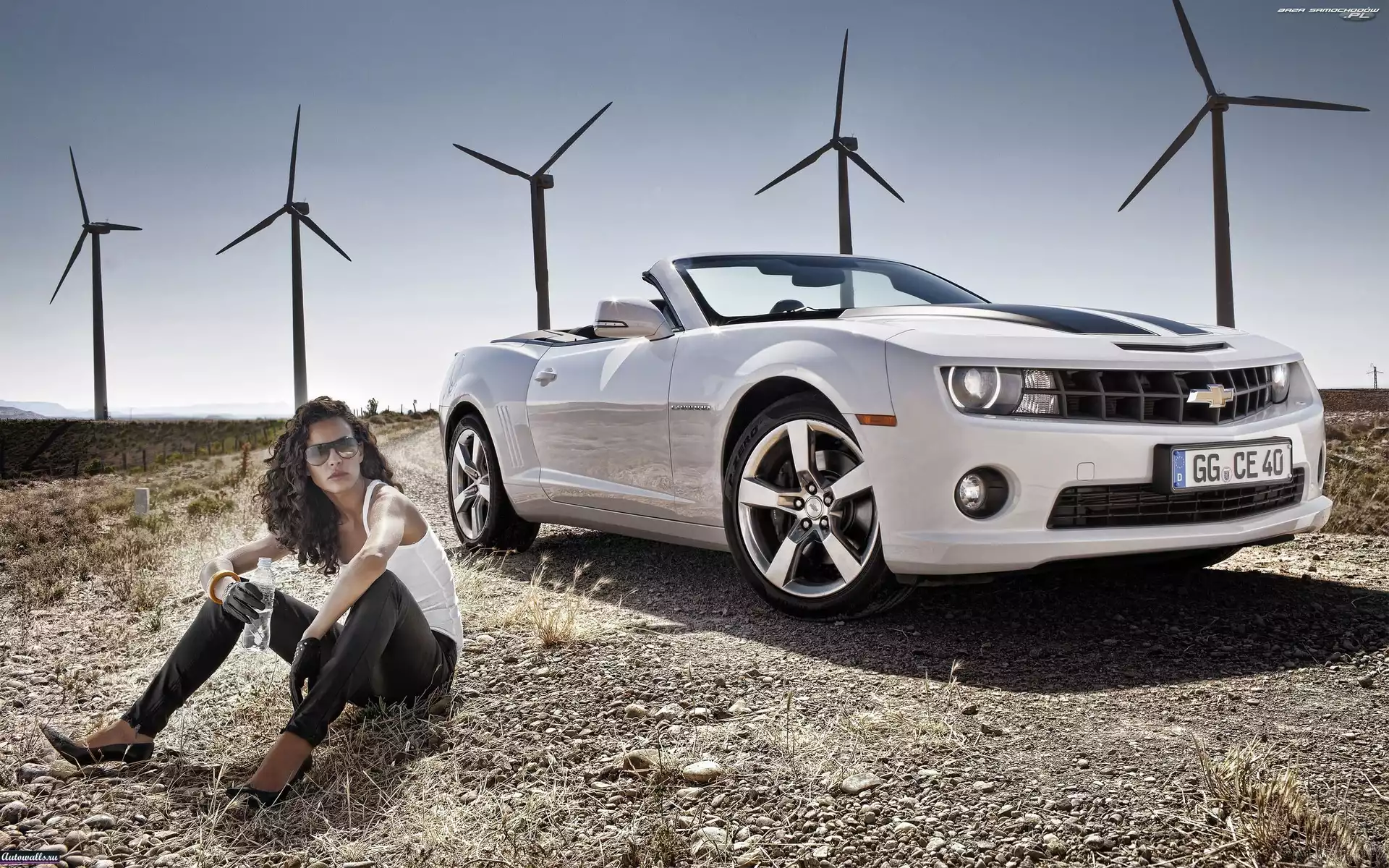 Kobieta, Cabrio, Chevrolet, Biały, Camaro- Zdjęcia samochodów