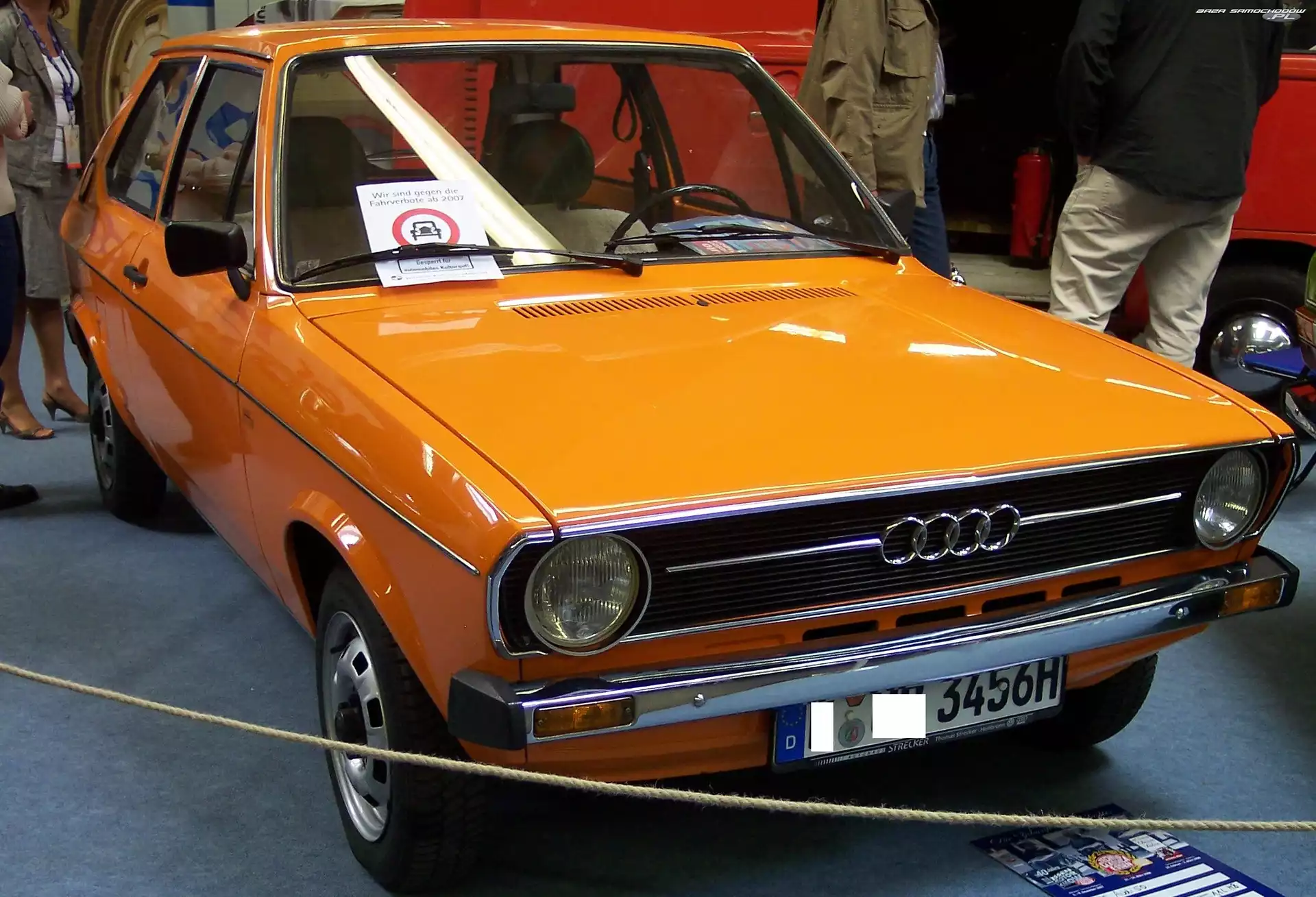 Hatchback, Audi 50 Wystawa, Audi 50, Salon Audi 50 Prezentacja, Audi 50, Wystawa Drzwi, Audi 50 Audi 50, Chrom, Przód, Zderzak Reklama, Pomarańczowe, Audi 50