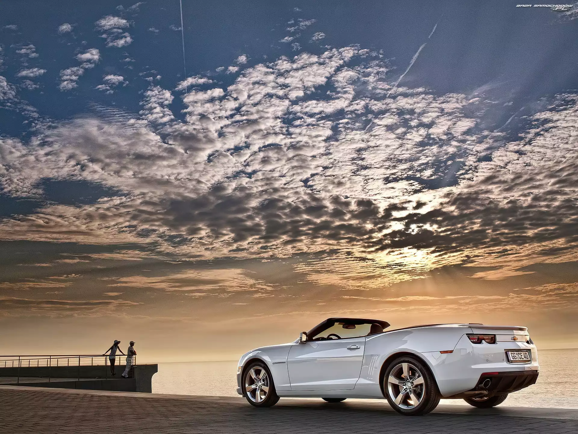 Turyści, Chmury, Camaro, Chevrolet, Morze- Zdjęcia samochodów